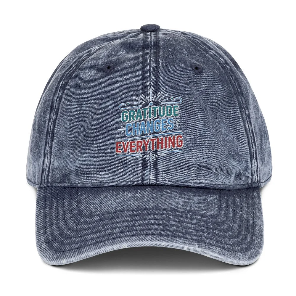 Gratitude Changes Everything › Gratitude Changes Everything Vintage Cap (Embroidered Logo) Image 1 of 6 Image 2 of 6 Image 3 of 6 Image 4 of 6 Image 5 of 6 Image 6 of 6 Gratitude Changes Everything Vintage Cap (Embroidered Logo) $25.00 Gratitude Changes Everything Vintage Cap (Embroidered Logo) Color: Black Navy Maroon Red Pink Charcoal Grey Purchase Added! Gratitude Changes Everything Vintage Cap (Embroidered Logo)