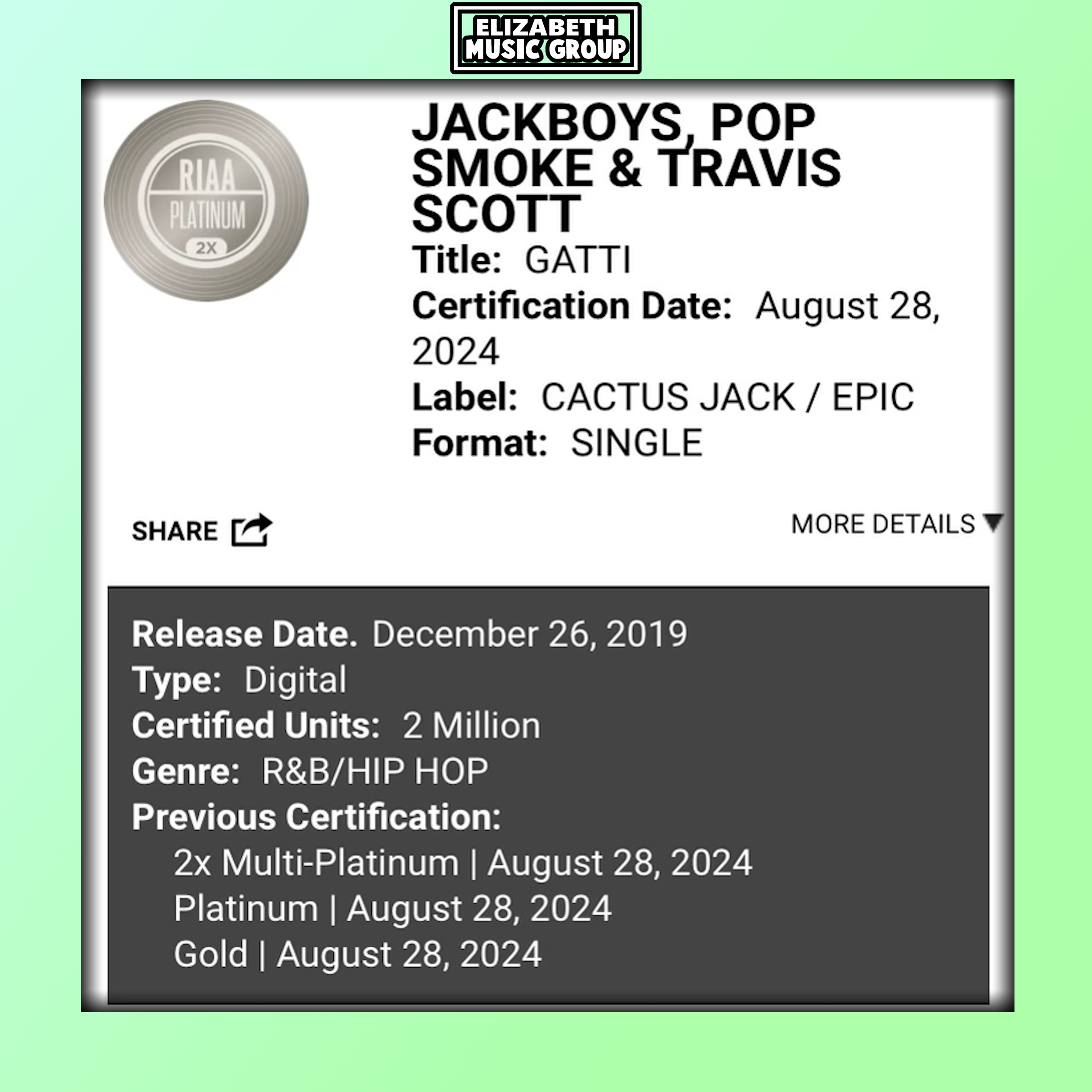 We’re thrilled to celebrate @klapkamusic for achieving 2x Platinum status for his incredible contributions to the song “GATTI” by Travis Scott, Pop Smoke, on the JACKBOYS album!